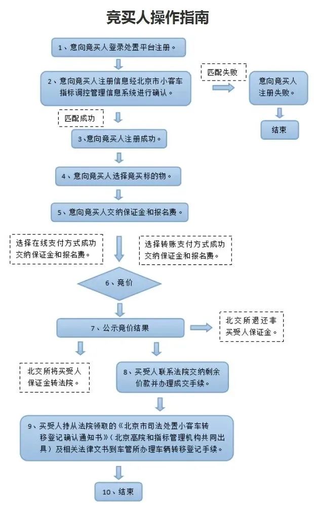 根據(jù)規(guī)定,競買人必須具備小客車搖號資格,即按照《北京市小客車數(shù)量調(diào)控暫行規(guī)定》實施細則(2020年修訂)第三十五條的規(guī)定,在北京市小客車指標(biāo)調(diào)控系統(tǒng)內(nèi)已取得經(jīng)審核確認的有效申請編碼,但尚未取得車輛配置指標(biāo)的個人。法人及其他組織不得參加競買。