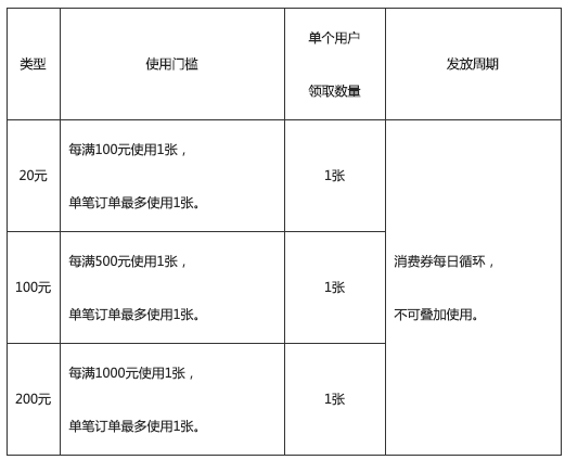 7.發生退貨交易,由于用戶自身電子設備不支持或其他系統問題導致的無法享受優惠等情況與活動主辦方無關,消費券后續不補發。