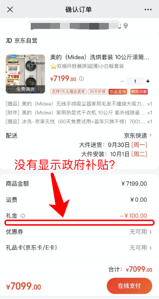 解決方法:你先把想購買的商品加入購物車,然后再打開京東App前往購物車對這件商品進行結算,你會發現這時下單頁面能顯示政府補貼了。
