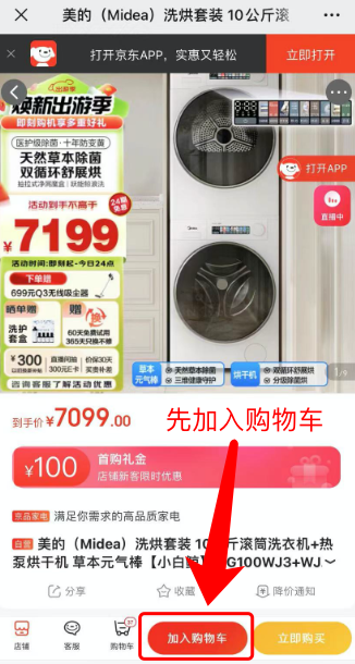 2)然后打開京東App,在購物車選擇該商品進行結算,你就會發現政府補貼能顯示出來了。