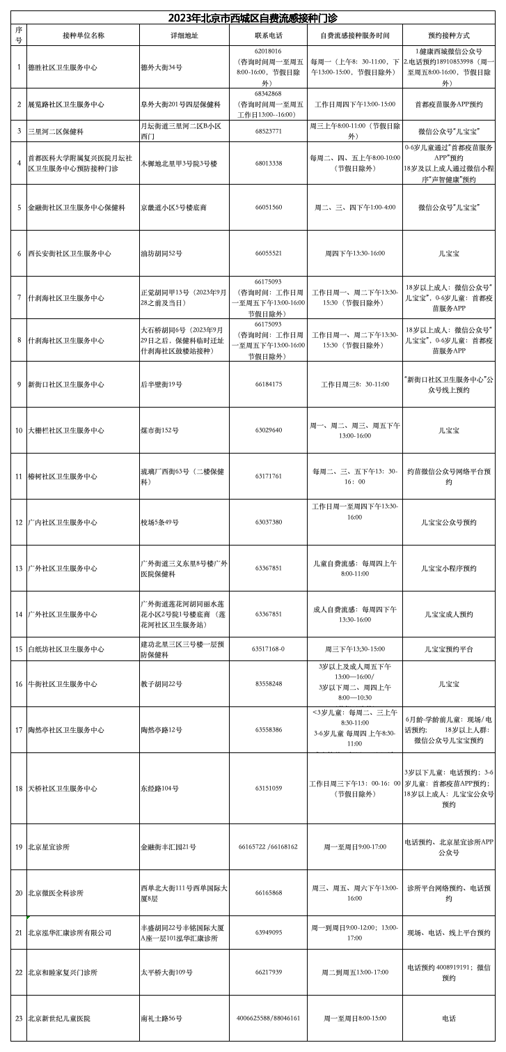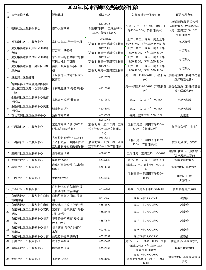北京西城區(qū)流感疫苗接種門診服務(wù)時間公示來了,具體事宜可咨詢接種門診
