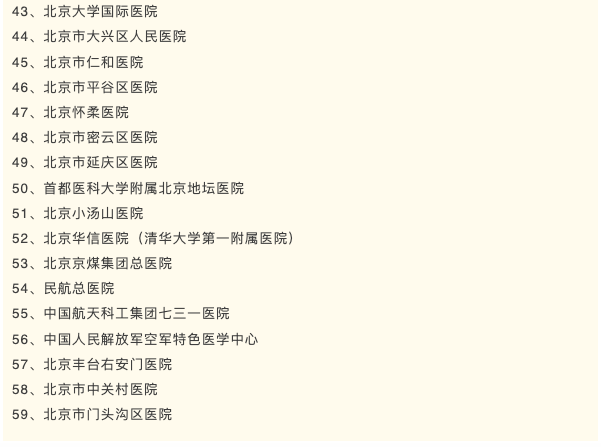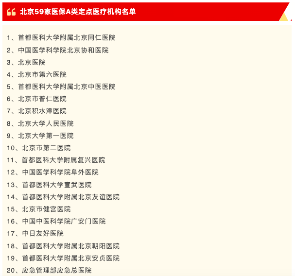1)截止目前,北京共有59家A類定點醫院,可以不用選直接報銷。